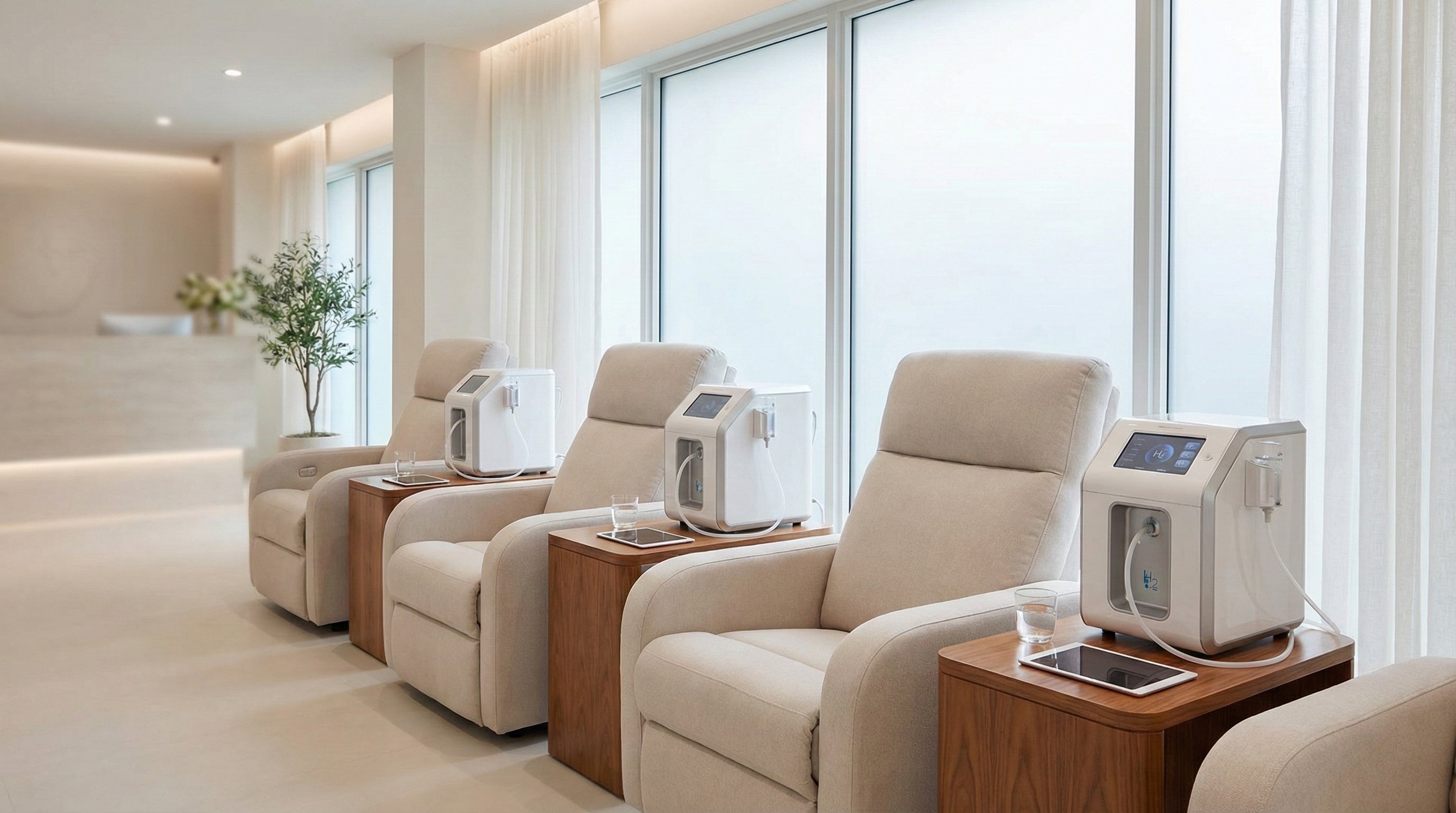 Each session is calm, quiet, and restorative. It includes a brief medical check-in, comfortable seating, gentle hydrogen inhalation, and post-session hydration with H₂-infused water. Many clients report feeling relaxed, mentally clearer, lighter, and subtly energized, with benefits often increasing over time.